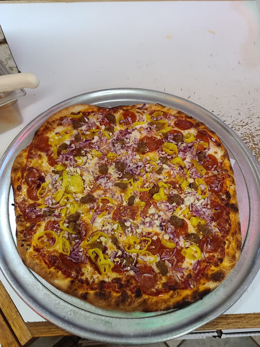 Great freshly made pizza. Especially for jamming in the garage. Super nice staff and again, fantastic pizza!